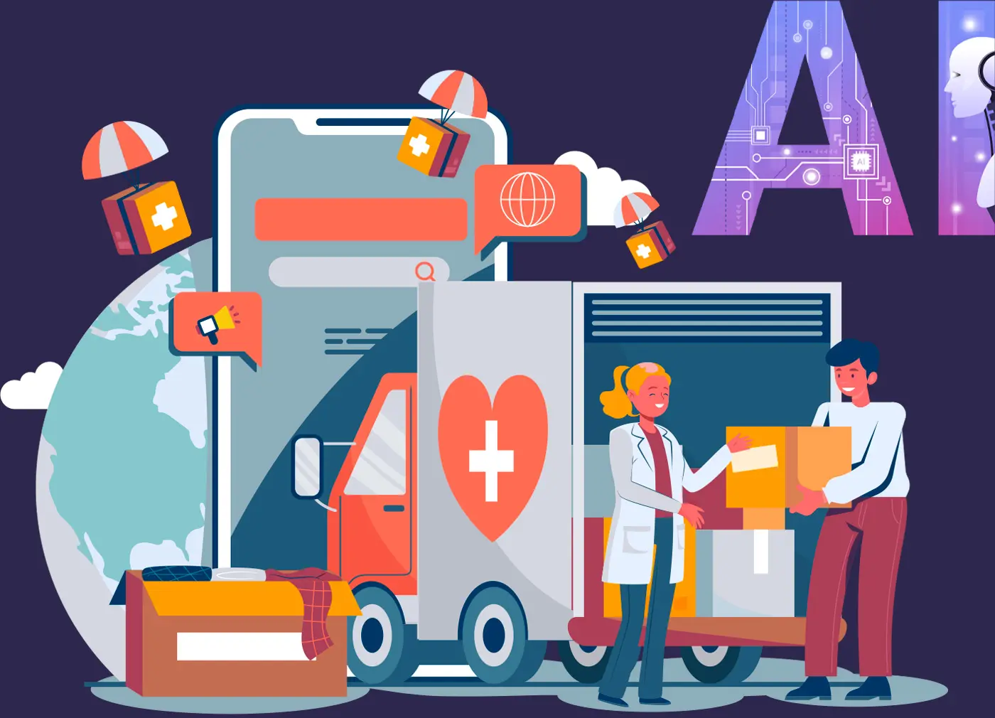 - Logistics and Supply Chain Management: AI can optimize the delivery of aid by predicting demand, identifying the most efficient routes, and minimizing logistical bottlenecks. Accordingly, this can ensure that critical supplies reach those who need them most, even in remote or inaccessible areas.